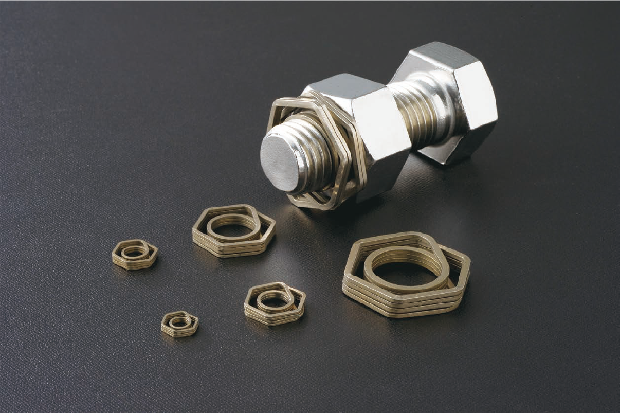 スプリングの緊縮力を利用した脱落防止スプリング。小さな力で高い緩み止め効果を持つボルトナットの緩み止めです。